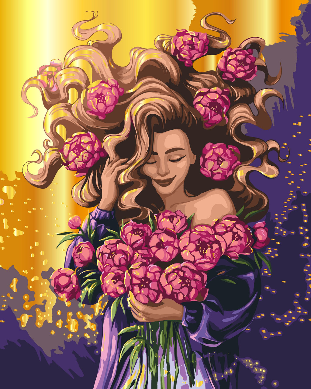 Картина за номерами Люди Весняна дівчина з металевими фарбами. 40*50 см Art Craft 10115-AC