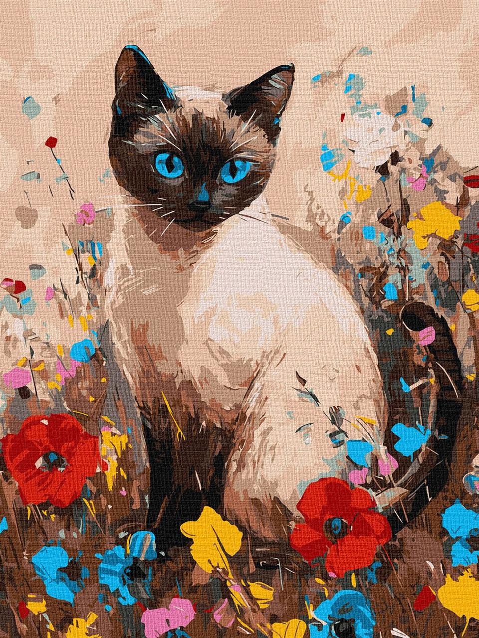 Картина за номерами Тварини. Сіамська кішка у квітах 30*40 см Ідейка KHO 6694 exp